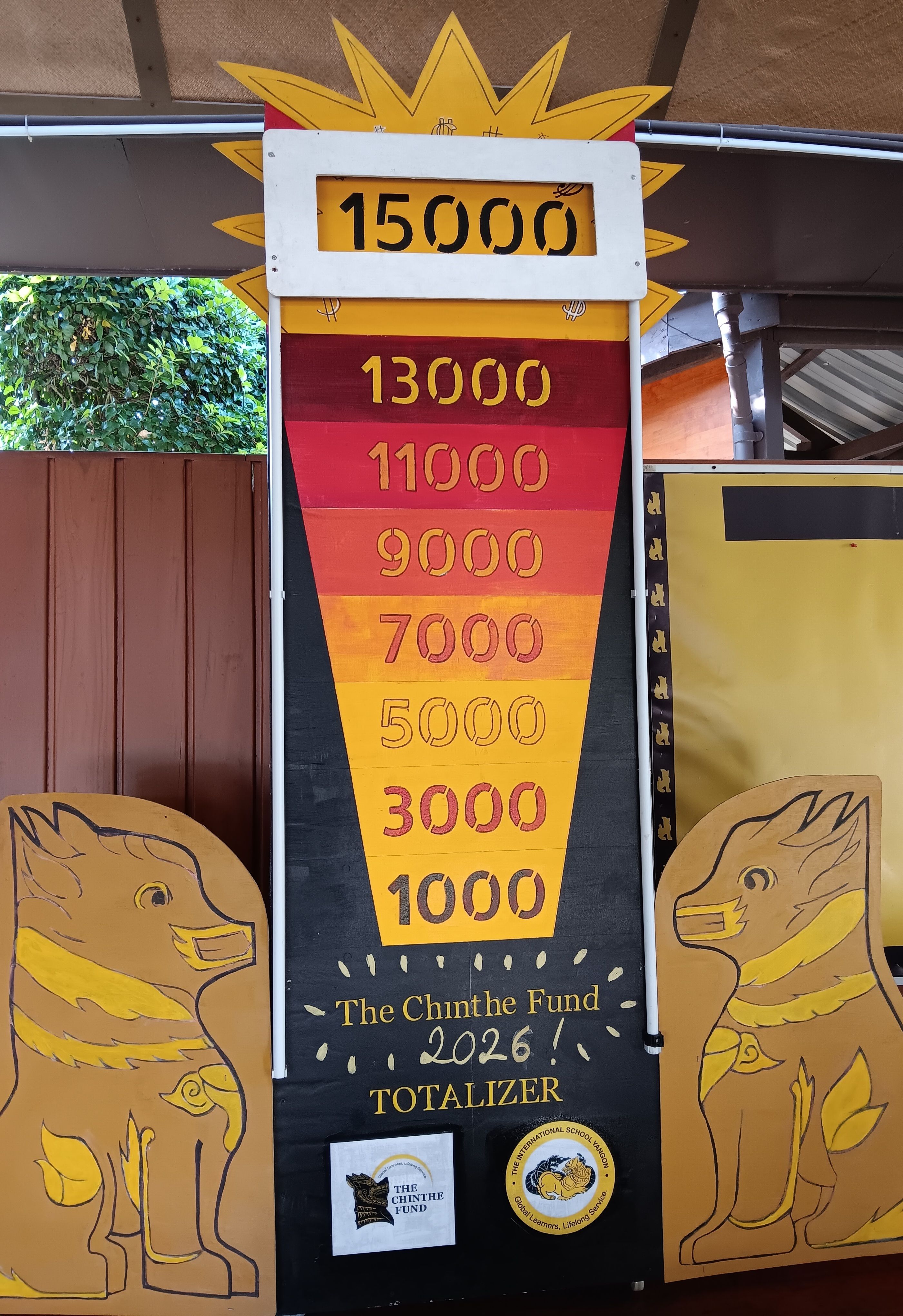 Now, the totalizer sits at the school entrance, allowing everyone to see how much money the ISY community has raised to support our partner organizations. After a very successful Gala, the Chinthe Fund has successfully met the annual goal of raising $15,000, and the totalizer proudly displays this achievement for everyone to celebrate.