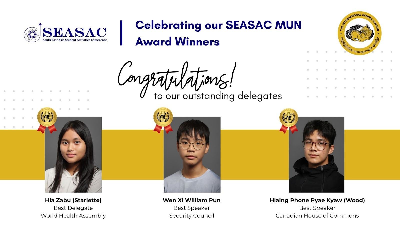 We are incredibly proud of our students who represented ISY at the recent SEASAC Arts and SEASAC MUN events. These experiences are a vital component of our mission to develop compassionate global citizens, offering Chinthes the unique opportunity to collaborate with peers from across the region while showcasing their creativity and critical thinking. By engaging in these enriching international experiences, our students exemplify the learner attributes of communication and collaboration. The entire ISY community celebrates your dedication and the spirit you brought to these prestigious events.
