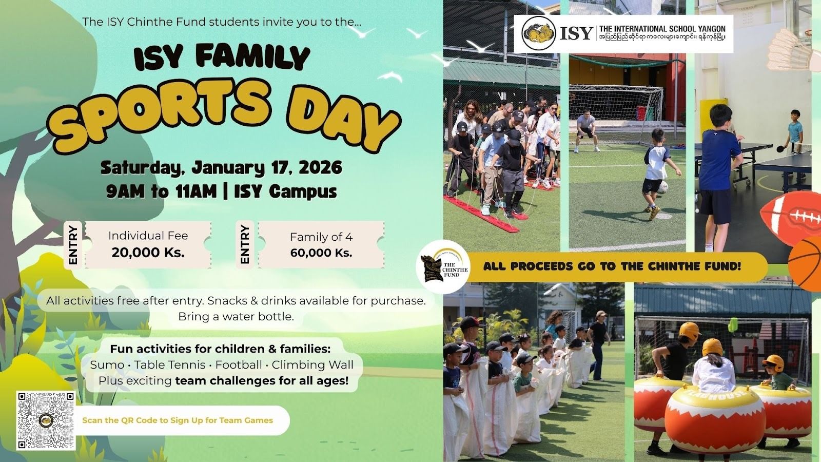 As the educational leader in Yangon, we will host a conference on Friday afternoon (January 23rd) for teachers from other international schools. The focus will be on SEL, and ISY teachers will provide workshops on a variety of educational topics. On Friday, students will be dismissed at 12:00 pm.